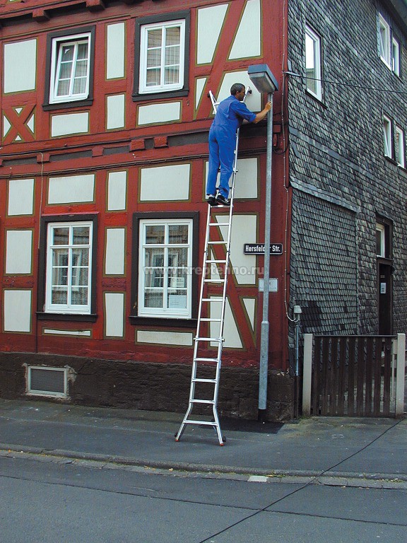 Лестница шарнирная телескопическая 4х5 перекладины, рабочая высота 6,05м STABILO KRAUSE Четырехсекционная шарнирная лестница из алюминия Может использоваться как две отдельные двусторонние стремянки с 4 встроенными удлинителями стоек, как приставная лестница и как двусторонняя стремянка Телескопическое выдвижение наружных секций лестницы от перекладины к перекладине (система ClickMatic) позволяет использовать ее в разных условиях Из внутренних и наружных секций можно создать две отдельные стремянки Перекладины профилированы со всех сторон Угловые раскосы обеспечивают дополнительную устойчивость Опорные заглушки двухкомпонентные, из твердого и мягкого материалов Твердый для прочного соединения с боковиной, а мягкий для сцепления с опорной поверхностью и предотвращения скольжения лестницы Технические характеристики: