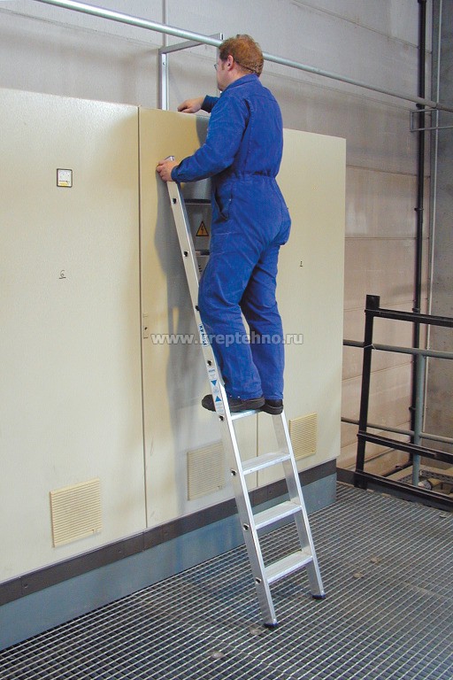 Легкая односекционная приставная лестница из алюминия со ступеньками для профессионального применения