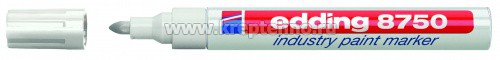 В отличие от обычного лакового маркера edding-8750 имеет упроченный, устойчивый к стиранию пулевидный наконечник.
