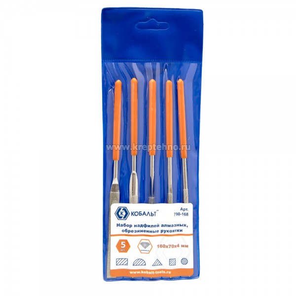 Надфили набор 5 шт. алмазные, 160х70х4мм, обрезиненная рукоятка, КОБАЛЬТ