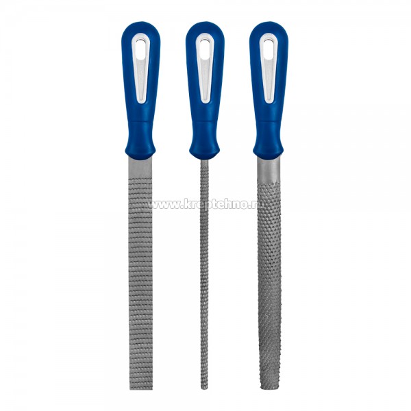 Рашпили №2, набор 3 шт., 200мм, двухкомпонентная рукоятка, КОБАЛЬТ