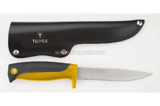 Купить Нож универсальный с кожаным чехлом TOPEX в Екатеринбурге и Свердловской области можно в сети магазинов КРЕПЕЖ-СИТИ.