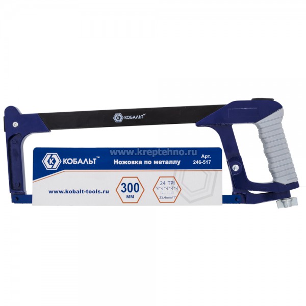 Ножовка по металлу 300мм КОБАЛЬТ 246-517 предназначена для прямолинейного пиления изделий из конструкционной стали, мягких цветных металлов, фанеры, OSB, пластика, плитки при установке соответствующего полотна.