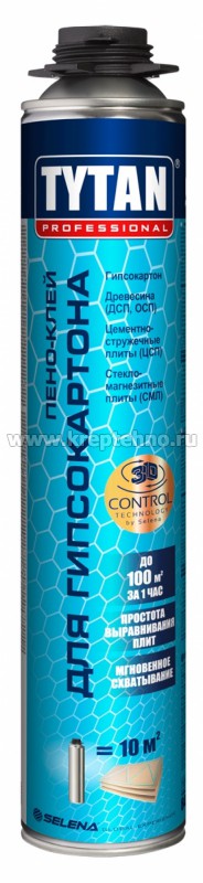 Tytan Professional Пено-клей для гипсокартона – полиуретановый клей, готовый к применению.