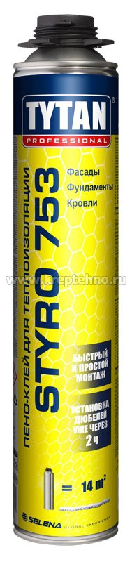 Купить Клей-пену для теплоизоляции STYRO 753 TYTAN в Екатеринбурге можно в магазинах КРЕПЕЖ-СИТИ.