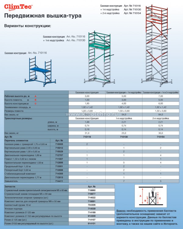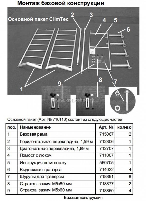 Подмости передвижные, базовая конструкция CLIMTEC KRAUSE