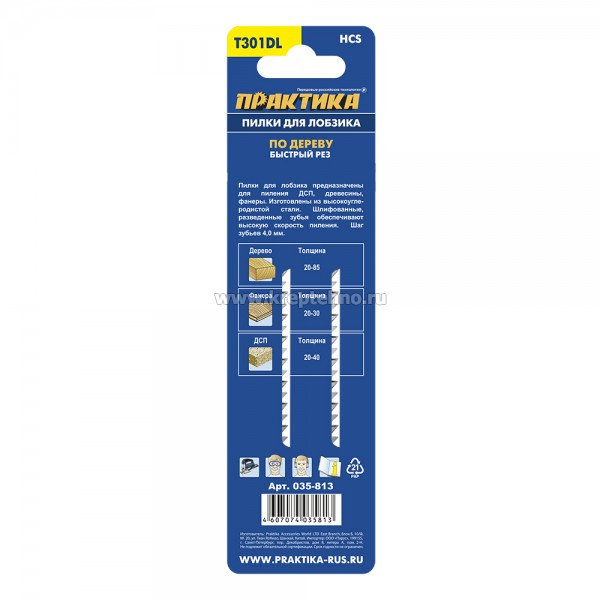 Купить Пилки для лобзика T301DL ПРАКТИКА в Екатеринбурге и Свердловской области можно в сети магазинов КРЕПЕЖ-СИТИ.