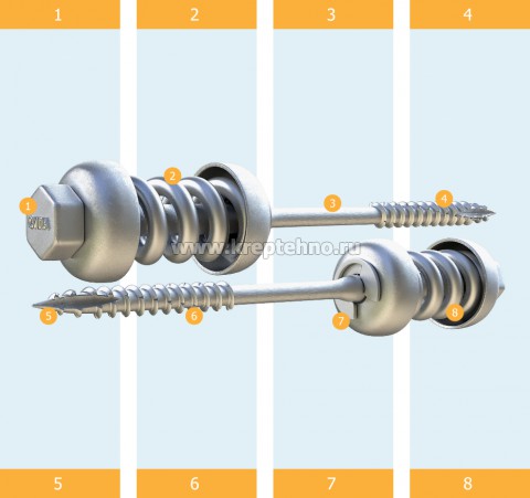 - Длина резьбы составляет 80 мм, что ускоряет темпы сборки строения за счет необходимости сверлить отверстие под шуруп.