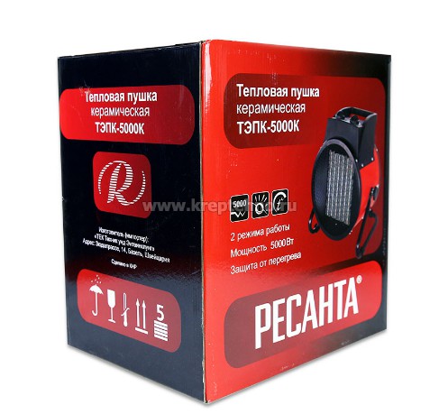 Купить Тепловую электрическую пушку ТЭПК-5000К Ресанта в Екатеринбурге и Свердловской области можно в сети магазинов КРЕПЕЖ-СИТИ.
