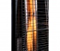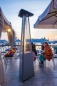 Высота в рабочем состоянии составляет 2 м 20 см, что не позволит человеку среднего роста обжечься – поскольку дотянуться до самой горячей незащищённой точки газового уличного обогревателя, расположенной в самой верхней части изделия – на отражателе и на дефлекторе из нержавеющей стали, предотвращающем высекание открытого пламени – будет достаточно проблематично