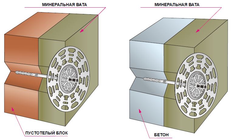 Данный крепежный элемент незаменим при монтаже минераловатных плит невысокой плотности.
