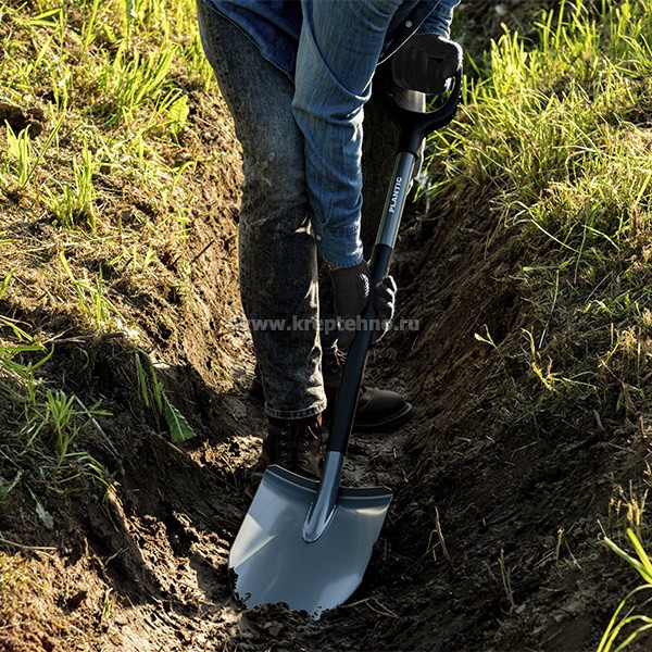 - Лопата Terra Pro для земляных работ подходит для выкапывания траншей, компостных ям, септиков и др.