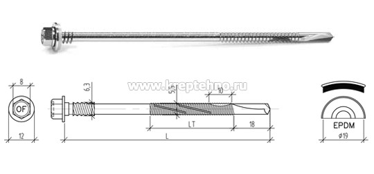 Саморез 6,3-14/5,5-24х160 для крепления сэндвич панелей, оцинк. Ruspert, увел.сверло 16мм, прокладка EPDM