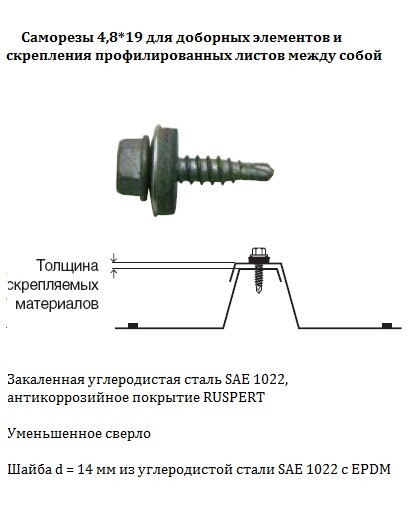 Саморез кровельный 4,8*19 D8 цинк, 6-гран, сверло, по дереву, покрытие Ruspert