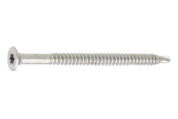 Представляет собой саморез типа LINO со сверлом. Состоит из потайной головки с крестовидным шлицем, стержня с мелкой резьбой, а также острия в виде сверла.