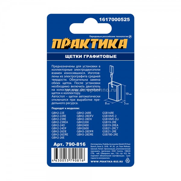 790-816/90-0427 Щетки графитовые для BOSCH №1617000525 (5x8x19 мм) автостоп, ПРАКТИКА упак 0.015 В наличии 193 193 В корзину