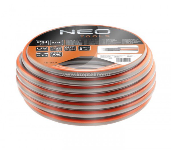 Шланг садовый 3/4" x 20 m, 4-слой NEO OPTIMA, изготовлен из эластичного ПВХ и полиэфирной пряжи, с двойной перекрестной оплеткой,