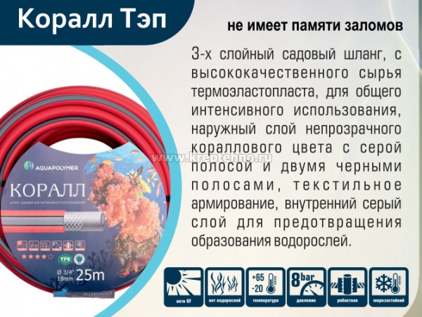Шланг ТЭП Коралл 3/4" 20м, толщина стенки 2,75мм, Aquapulse
