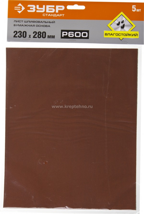Шкурка абразивная 230х280мм Р600 (М28) на бум. основе, влагост. 5л