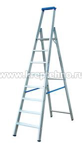 - Односторонняя алюминиевая стремянка с высокопрочным развальцованным соединением ступенек со боковинами для долгосрочного профессионального применения