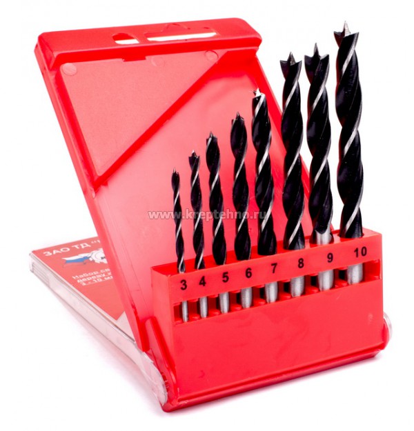 Набор сверл по дереву из 8шт ф3-10мм (ф3, 4, 5, 6, 7, 8, 9, 10мм)