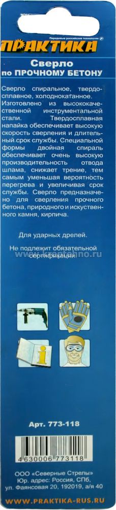 Купить Сверло по бетону ц/х ударное 4-х спиральное Профи ПРАКТИКА в Екатеринбурге и Свердловской области можно в сети магазинов КРЕПЕЖ-СИТИ.