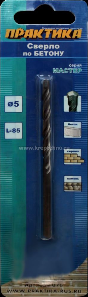 Сверло по бетону 5*85 ц/х ударное, 2-х спиральное Мастер, ПРАКТИКА