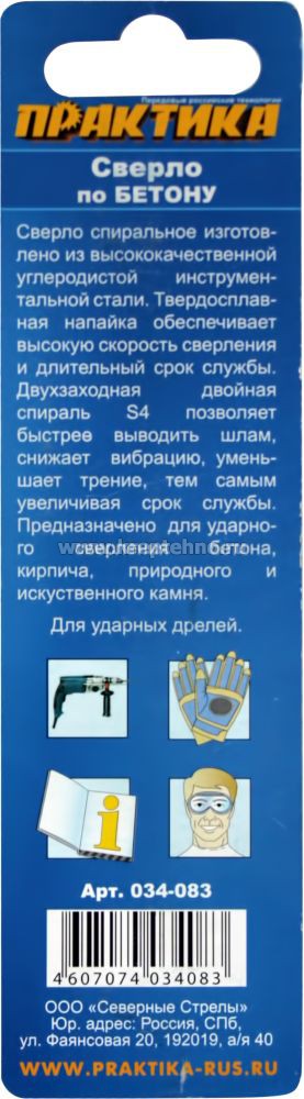 Купить Сверло по бетону ц/х ударное 2-х спиральное Мастер ПРАКТИКА в Екатеринбурге и Свердловской области можно в сети магазинов КРЕПЕЖ-СИТИ.