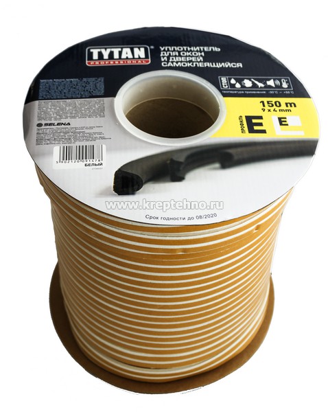 Уплотнитель для окон и дверей E 9х4мм, 150м (2х75м) белый