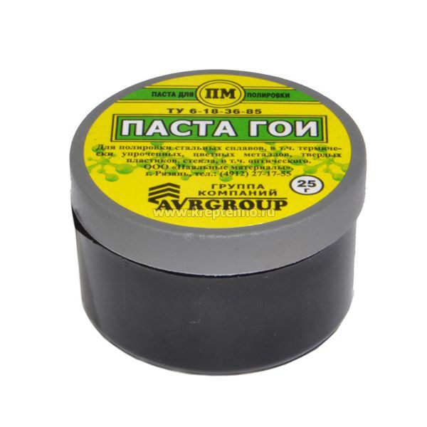 - Тонкие пасты имеют соответственно тёмно-зелёный и чёрный с зеленоватым отливом цвета, используются для тонкой притирки (доводки), придают зеркальный блеск.