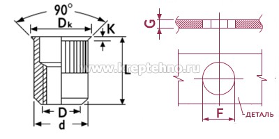 Заклепка-гайка 8*15.5 ART1021 уменьшенный потайной бортик, нержавеющая сталь, А2 Резьбовая заклепка (заклепка-гайка) из нержавеющей стали конструктивно соответствует обычной резьбовой заклепке, но при этом не образует гальванапару с медными элементами (согласно таблице «Электрохимические пары и соединений между ними»). Она используется в агрессивных средах, обладает большей сопротивляемостью коррозии в присутствии электрических токов. Имеет широкое применение в станкостроении, оборудовании для пищевой промышленности, электротехнике и осветительных приборах. Легирование стали обеспечивает повышенную стойкость к атмосферной, химической и иных видов коррозий. Хром образует на поверхности стали оксидные пленки и приводит ее в пассивное состояние. Устойчивость нержавеющих сталей к коррозии также повышается за счет однородности и небольшого содержания вредных примесей. Изделия из нержавеющей стали крепятся метизами из нержавейки. Технические параметры: | D | G, мм | F, мм +0,1/-0 | d,мм +0/-0,15 | Dк,мм | k,мм | L, мм | Nm | Арт. | | М3 | 0,5-2,0 | 5,00 | 4,90 | 5,50 | 0,40 | 10,00 | 2 | SF-IX-ITRG M03-C | | М4 | 0,5-2,5 | 6,00 | 5,90 | 7,00 | 0,50 | 10,00 | 5 | SF-IX-ITRG M04-C | | М5 | 0,5-2,5 | 7,00 | 6,90 | 8,00 | 0,50 | 11,50 | 9 | SF-IX-ITRG M05-C | | М6 | 0,5-2,5 | 9,00 | 8,90 | 10,00 | 0,60 | 14,00 | 14 | SF-IX-ITRG M06-C | | М8 | 0,5-3,0 | 11,00 | 10,90 | 12,00 | 0,60 | 15,50 | 25 | SF-IX-ITRG M08-C | | М10 | 0,8-3,0 | 12,00 | 11,90 | 13,50 | 0,80 | 18,00 | 45 | SF-IX-ITRG M10-C12 | | М10 | 0,8-3,5 | 13,00 | 12,90 | 14,00 | 0,70 | 19,50 | 45 | SF-IX-ITRG M10-C13 | Механические параметры (разрушающая нагрузка): | Диаметр , D, мм | SF-IX-ITRG-C SF-IX-ITSG-C | | Вырыв болта, Кн | Скручивание резьбы, Нм | Срез, Кн | | М3 | — | — | — | | М4 | 10 | 5 | 5 | | М5 | 16 | 9 | 6 | | Мб | 22 | 14 | 9 | | М8 | 35 | 25 | 11.2 | | М10 | 57 | 45 | 12.5 | | М12 | — | — | — | Купить Заклепку-гайка уменьшенный потайной бортик нержавеющая сталь А2 в Екатеринбурге и Свердловской области можно в сети магазинов КРЕПЕЖ-СИТИ.у ВНИМАНИЕ! На сайте указано наличие товара на складе в Екатеринбурге. Наличие в магазинах просьба уточнять по телефонам. Доставка по Екатеринбургу от 10 тыс. руб. Доставка до ТК бесплатно. Скидки для постоянных покупателей. Интернет-заказы обрабатываются в рабочие дни с 10 до 18 часов.