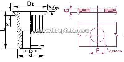 Купить Заклепку резьбовую потайной бортик с насечкой в Екатеринбурге и Свердловской области можно в сети магазинов КРЕПЕЖ-СИТИ.