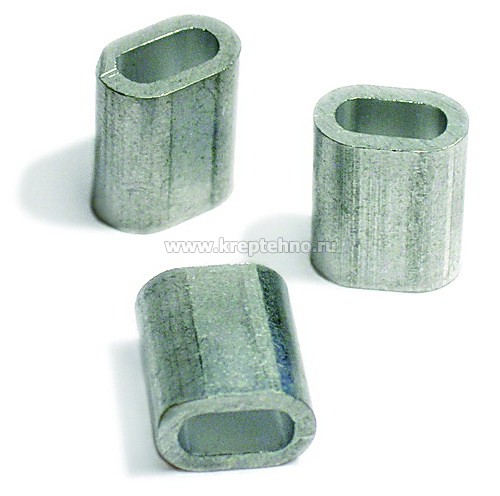 Алюминиевый зажим DIN3093 используют для соединения вместе двух тросов и затягивания концов канатов в петли. Деталь в форме приплюснутого цилиндра с полой внутренней частью, для заделки концов каната методом опрессовки.