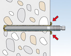 Химический анкер R в сочетании с резьбовой шпилькой RG M пригоден для предварительного монтажа.