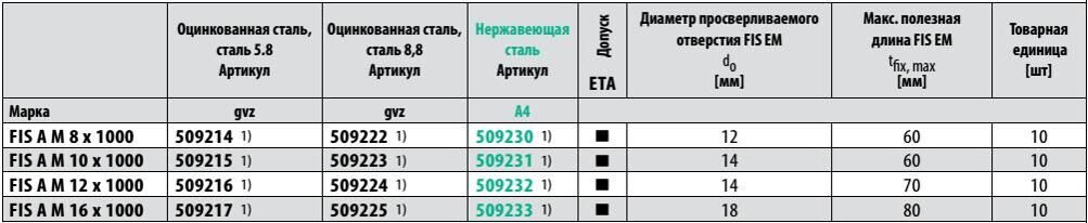 Инъекционная система, включающая в себя инъекционный состав FIS EM и резьбовую шпильку FIS А, пригодна для предварительного и сквозного монтажа.