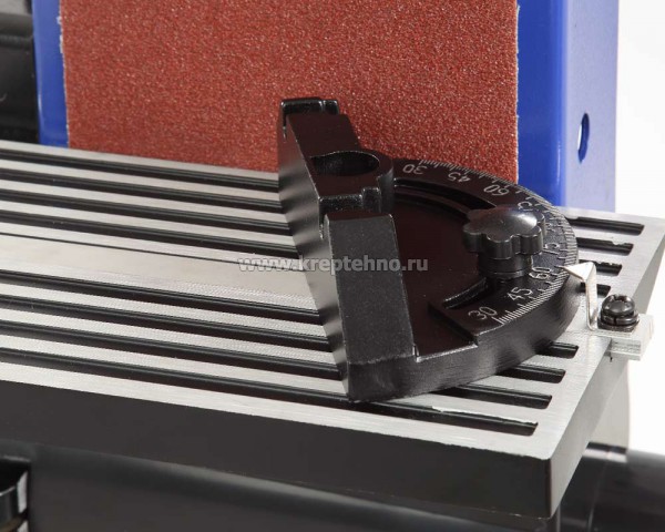 Угол наклона стола при ленточном шлифовании – от 0 до 60 град., при дисковом – от 0 до 45 град.