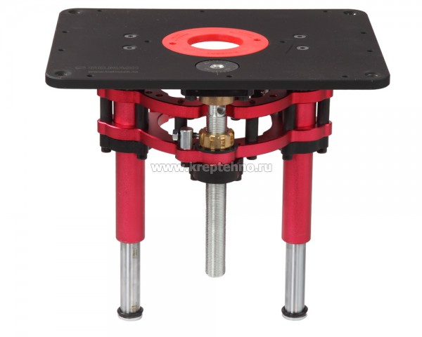 Он позволяет выполнять перемещение фрезерного двигателя по вертикали с высокой точностью - 1 оборот равен 1,58 мм по высоте. Не требует дополнительной фиксации его положения.