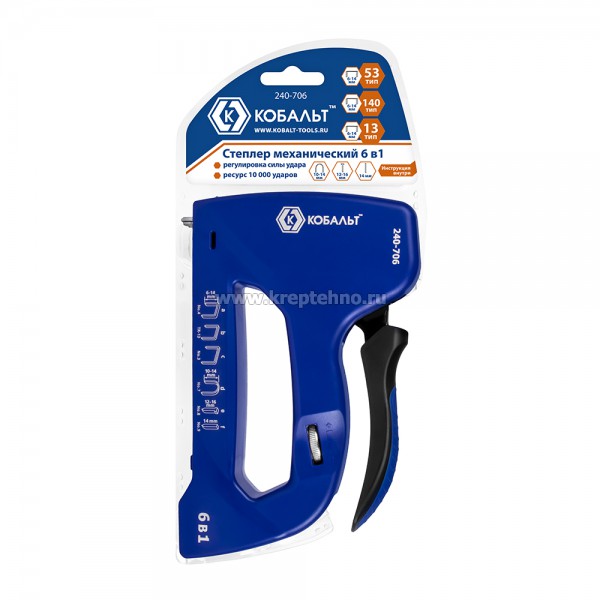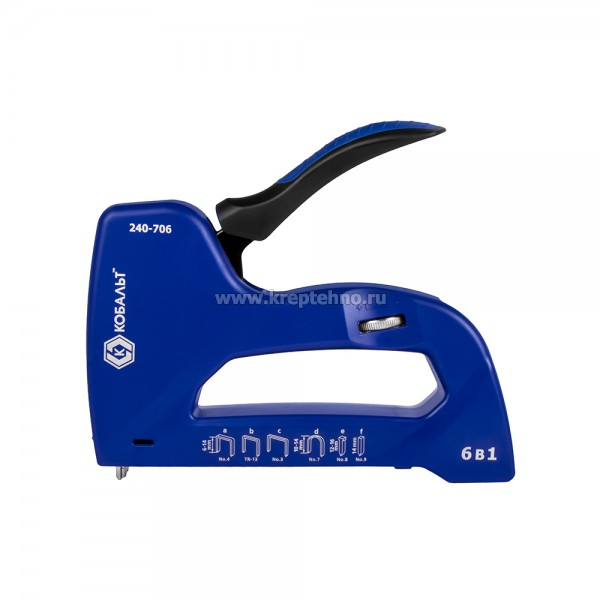 Степлер мебельный 6-14мм, 6 в 1, тип 53/140/13, скобы для кабеля, шпильки, гвозди, регулятор удара, КОБАЛЬТ